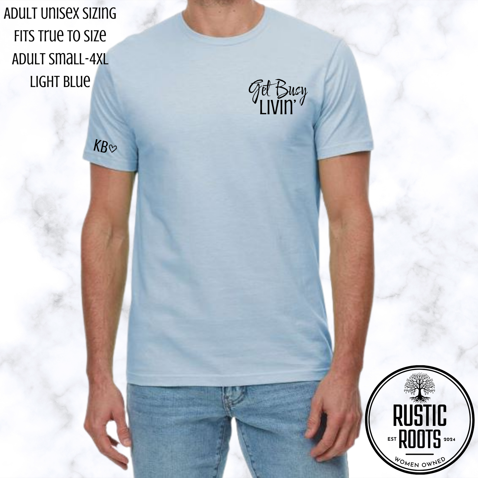 In collaboration with her daughter Payton, we created this meaningful apparel to celebrate Kari in her legacy and carry forward the message she lived by: “Get Busy Livin.”