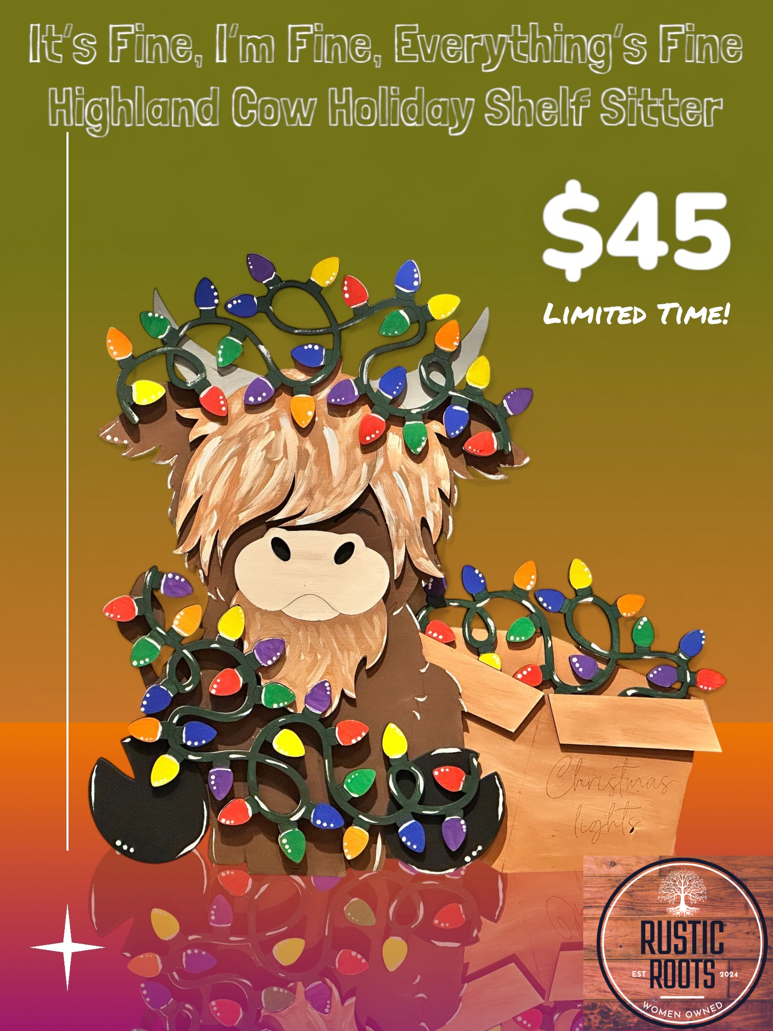 It’s Fine, I’m Fine, Everything’s Fine! Highland Cow Shelf Sitter