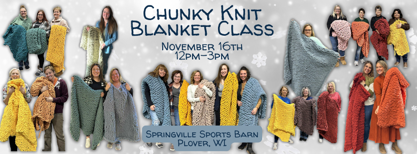 Sip & Knit Chunky Blanket Workshop (November 16th 12:00pm @ Springville Sports Barn)